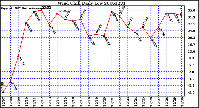 Milwaukee Weather -- 20061231 Wind Chill Daily Low -- From curtronics.com by Curt Blank