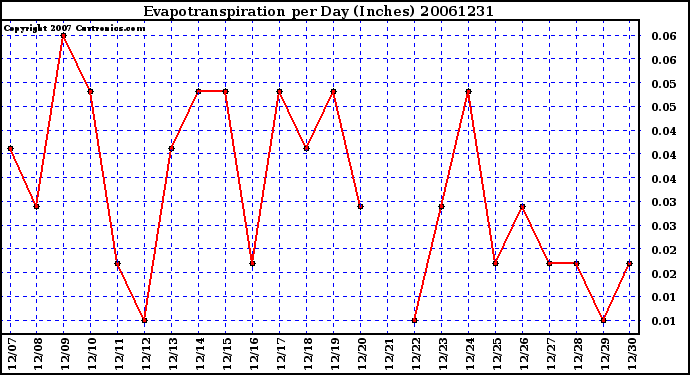 Milwaukee Weather -- 20061231 Evapotranspiration per Day (Inches) -- From curtronics.com by Curt Blank