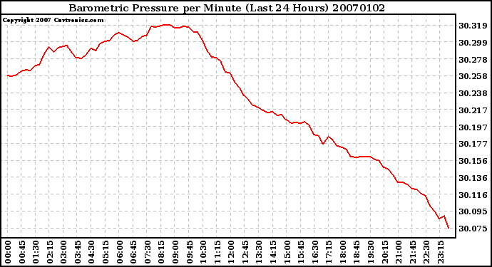 Milwaukee Weather -- 20070102 Barometric Pressure per Minute (Last 24 Hours) -- From curtronics.com by Curt Blank
