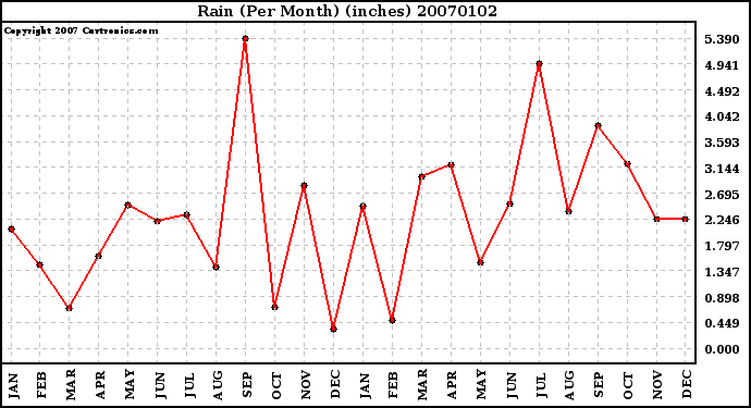 Milwaukee Weather -- 20070102 Rain (Per Month) (inches) -- From curtronics.com by Curt Blank