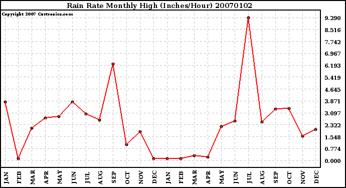 20070102 Rain Rate Monthly High (Inches/Hour)
