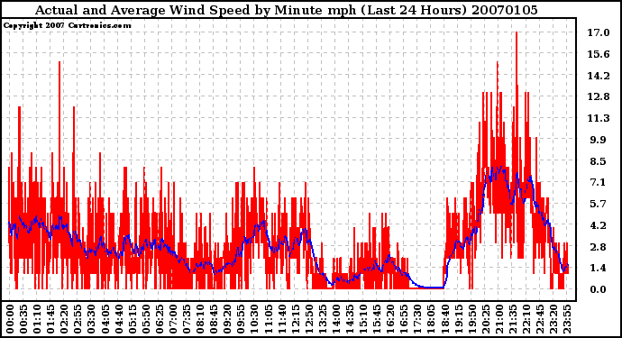 20070105 Actual and Average Wind Speed by Minute mph (Last 24 Hours)