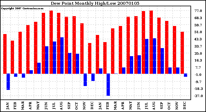 Milwaukee Weather -- 20070105 Dew Point Monthly High/Low -- From curtronics.com by Curt Blank