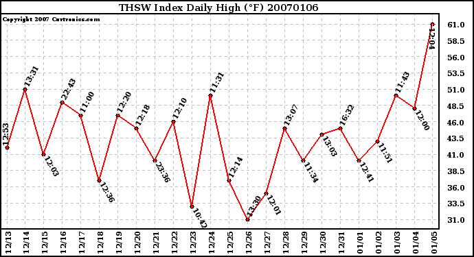 Milwaukee Weather -- 20070106 THSW Index Daily High (°F) -- From curtronics.com by Curt Blank