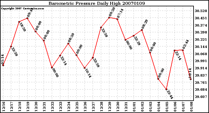 Milwaukee Weather -- 20070109 Barometric Pressure Daily High -- From curtronics.com by Curt Blank