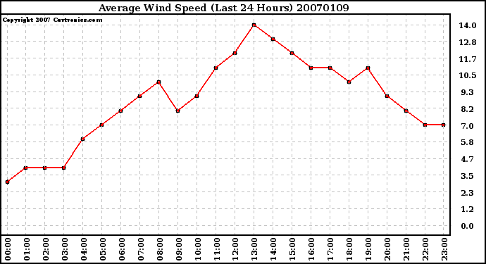 Milwaukee Weather -- 20070109 Average Wind Speed (Last 24 Hours) -- From curtronics.com by Curt Blank