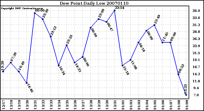 Milwaukee Weather -- 20070110 Dew Point Daily Low -- From curtronics.com by Curt Blank