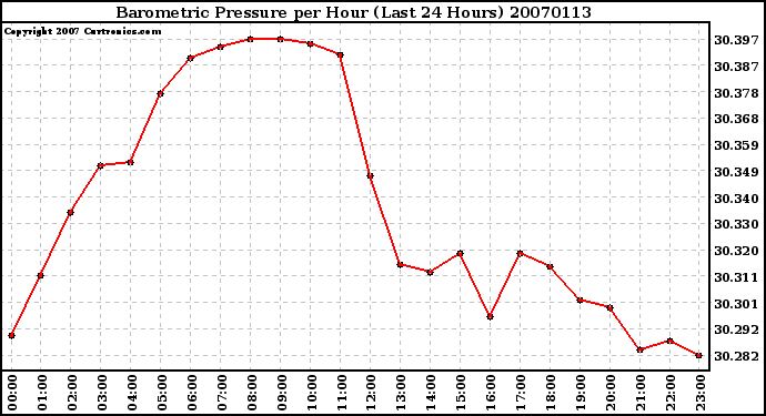 20070113 Barometric Pressure per Hour (Last 24 Hours)