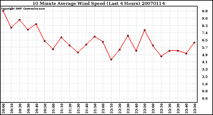20070114 10 Minute Average Wind Speed (Last 4 Hours)