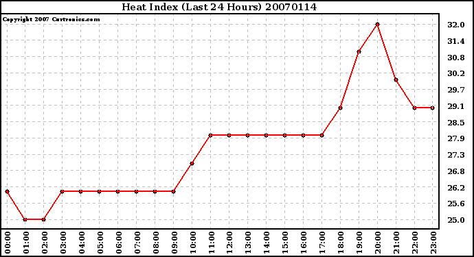 Milwaukee Weather -- 20070114 Heat Index (Last 24 Hours) -- From curtronics.com by Curt Blank