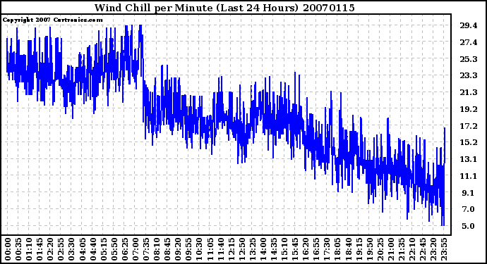 20070115 Wind Chill per Minute (Last 24 Hours)