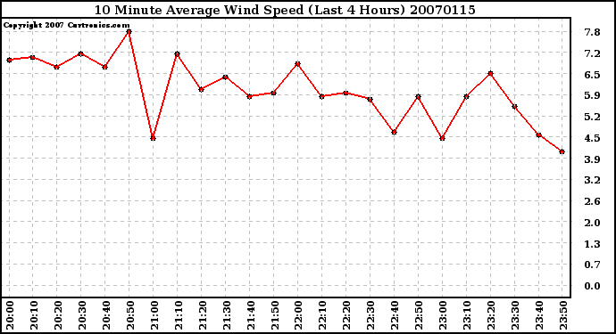 20070115 10 Minute Average Wind Speed (Last 4 Hours)