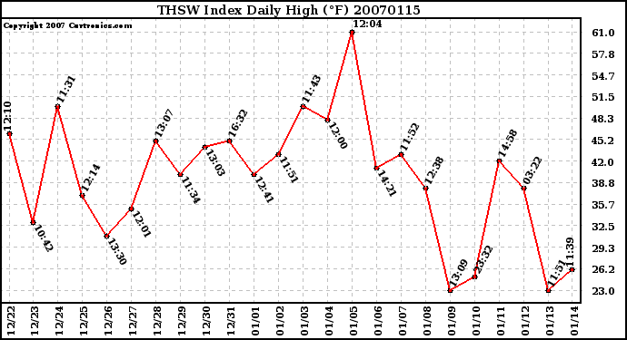 Milwaukee Weather -- 20070115 THSW Index Daily High (°F) -- From curtronics.com by Curt Blank