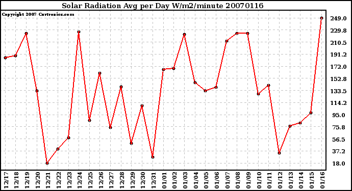 20070116 Solar Radiation Avg per Day W/m2/minute