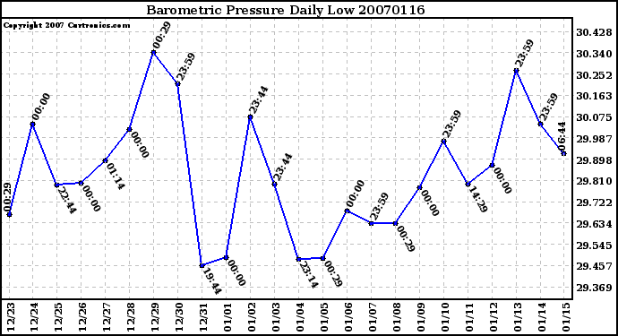 Milwaukee Weather -- 20070116 Barometric Pressure Daily Low -- From curtronics.com by Curt Blank