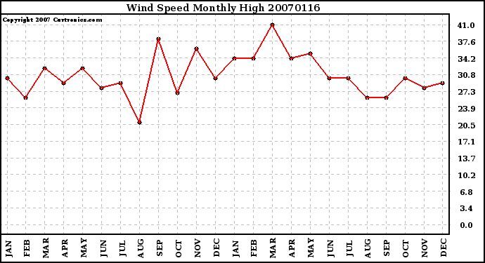 Milwaukee Weather -- 20070116 Wind Speed Monthly High -- From curtronics.com by Curt Blank