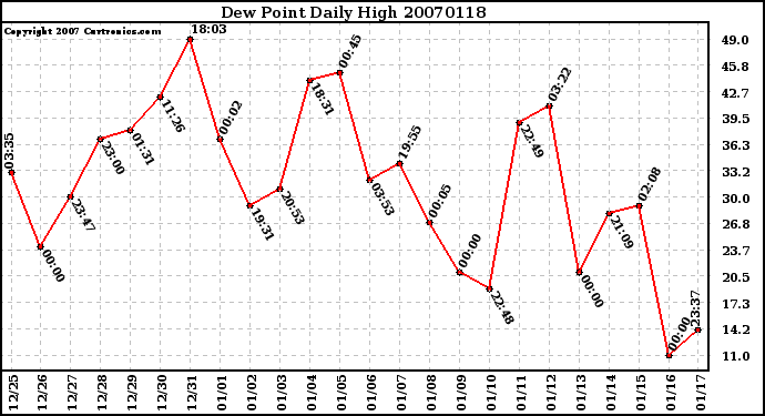 Milwaukee Weather -- 20070118 Dew Point Daily High -- From curtronics.com by Curt Blank