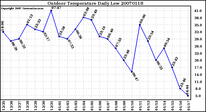 Milwaukee Weather -- 20070118 Outdoor Temperature Daily Low -- From curtronics.com by Curt Blank