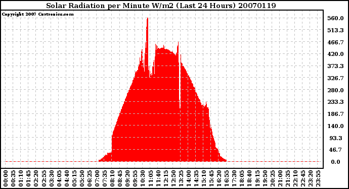Milwaukee Weather -- 20070119 Solar Radiation per Minute W/m2 (Last 24 Hours) -- From curtronics.com by Curt Blank
