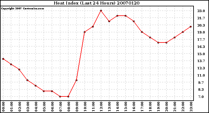 Milwaukee Weather -- 20070120 Heat Index (Last 24 Hours) -- From curtronics.com by Curt Blank