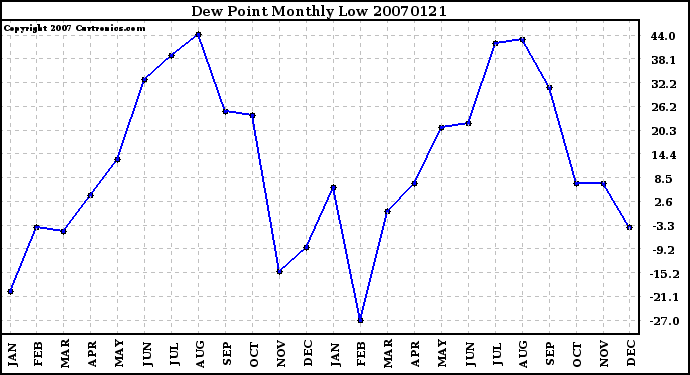 Milwaukee Weather -- 20070121 Dew Point Monthly Low -- From curtronics.com by Curt Blank