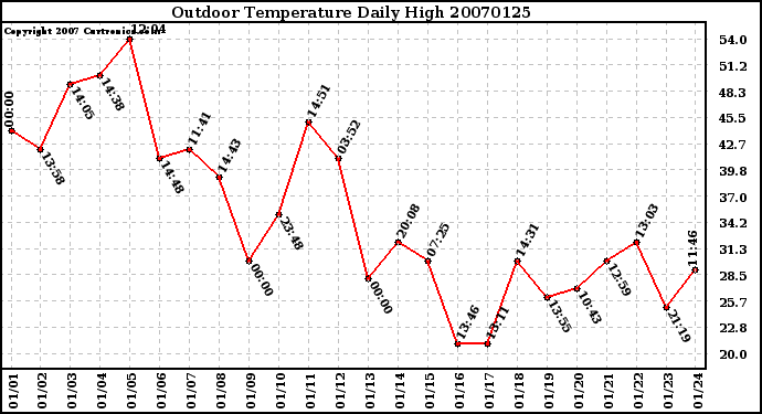 Milwaukee Weather -- 20070125 Outdoor Temperature Daily High -- From curtronics.com by Curt Blank