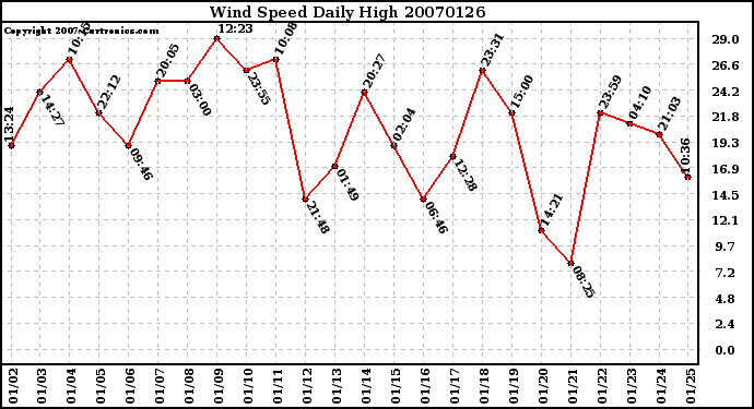 Milwaukee Weather -- 20070126 Wind Speed Daily High -- From curtronics.com by Curt Blank