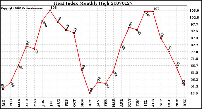 Milwaukee Weather -- 20070127 Heat Index Monthly High -- From curtronics.com by Curt Blank