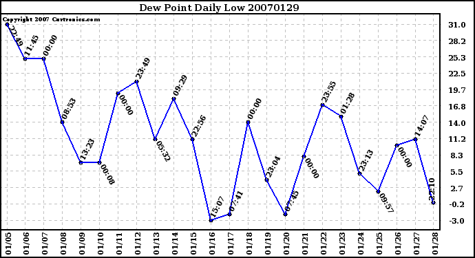 Milwaukee Weather -- 20070129 Dew Point Daily Low -- From curtronics.com by Curt Blank