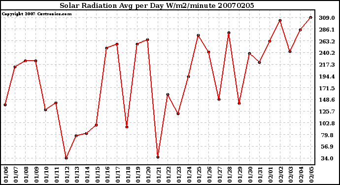 20070205 Solar Radiation Avg per Day W/m2/minute