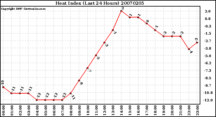 Milwaukee Weather -- 20070205 Heat Index (Last 24 Hours) -- From curtronics.com by Curt Blank