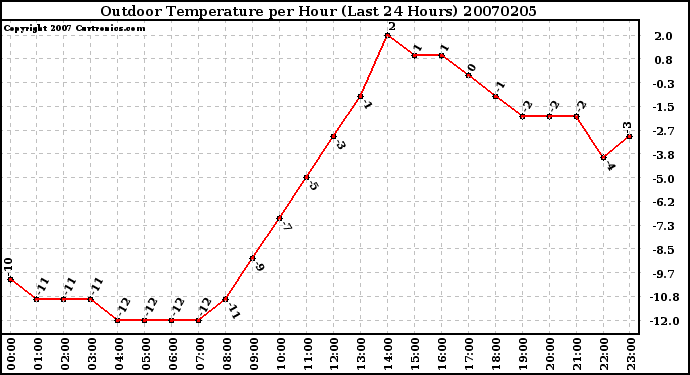 20070205 Outdoor Temperature per Hour (Last 24 Hours)