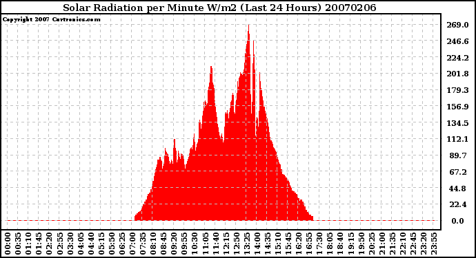 20070206 Solar Radiation per Minute W/m2 (Last 24 Hours)