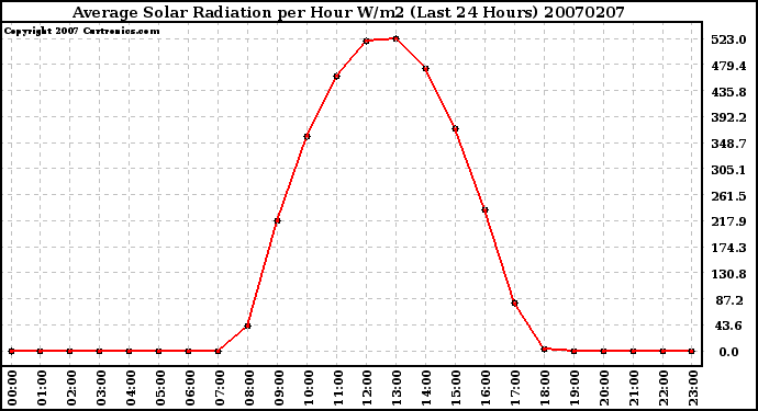 Milwaukee Weather -- 20070207 Average Solar Radiation per Hour W/m2 (Last 24 Hours) -- From curtronics.com by Curt Blank