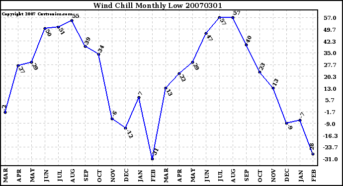 Milwaukee Weather -- 20070301 Wind Chill Monthly Low -- From curtronics.com by Curt Blank