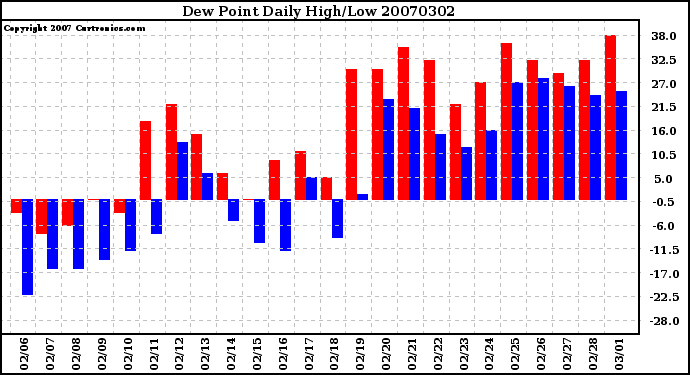 Milwaukee Weather -- 20070302 Dew Point Daily High/Low -- From curtronics.com by Curt Blank