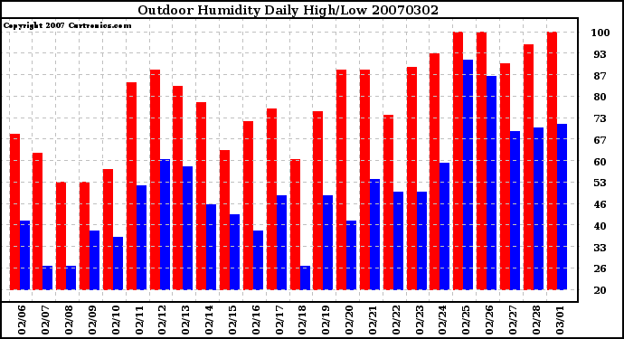 Milwaukee Weather -- 20070302 Outdoor Humidity Daily High/Low -- From curtronics.com by Curt Blank