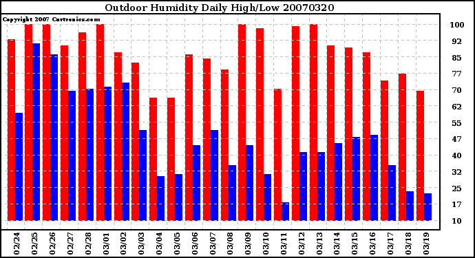 Milwaukee Weather -- 20070320 Outdoor Humidity Daily High/Low -- From curtronics.com by Curt Blank
