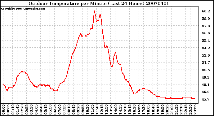 Milwaukee Weather -- 20070401 Outdoor Temperature per Minute (Last 24 Hours) -- From curtronics.com by Curt Blank