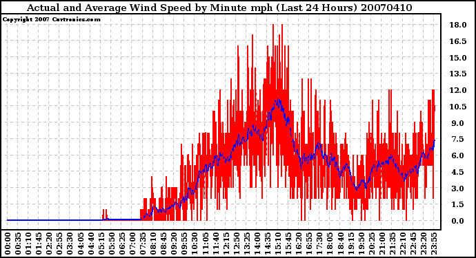 20070410 Actual and Average Wind Speed by Minute mph (Last 24 Hours)