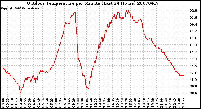 Milwaukee Weather -- 20070417 Outdoor Temperature per Minute (Last 24 Hours) -- From curtronics.com by Curt Blank