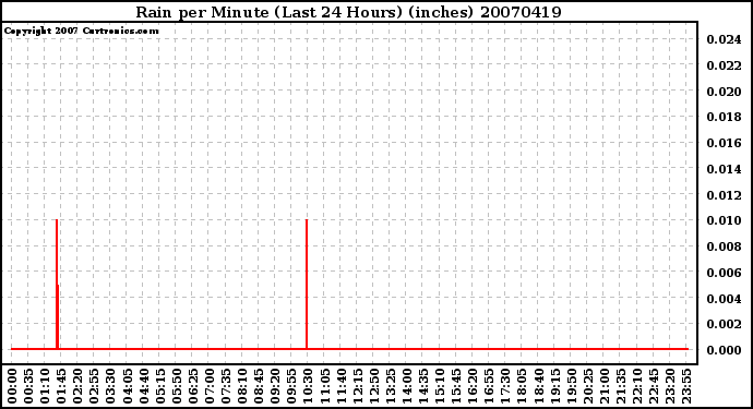 Milwaukee Weather -- 20070419 Rain per Minute (Last 24 Hours) (inches) -- From curtronics.com by Curt Blank