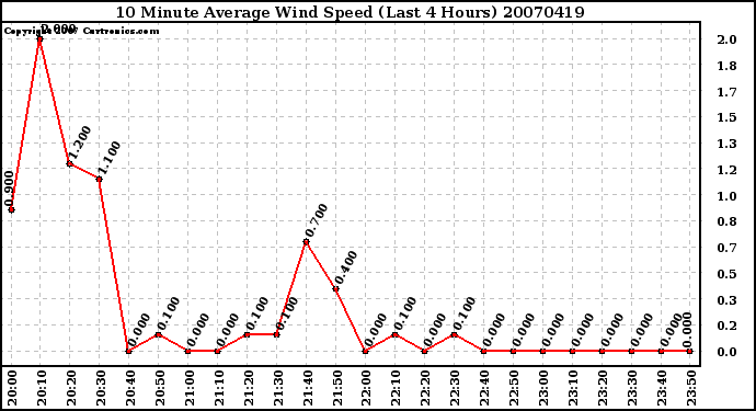 20070419 10 Minute Average Wind Speed (Last 4 Hours)