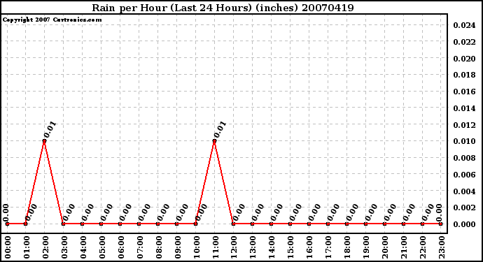 Milwaukee Weather -- 20070419 Rain per Hour (Last 24 Hours) (inches) -- From curtronics.com by Curt Blank