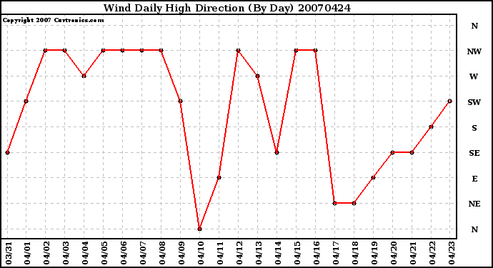 Milwaukee Weather -- 20070424 Wind Daily High Direction (By Day) -- From curtronics.com by Curt Blank