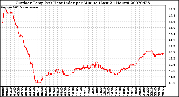 20070426 Outdoor Temp (vs) Heat Index per Minute (Last 24 Hours)