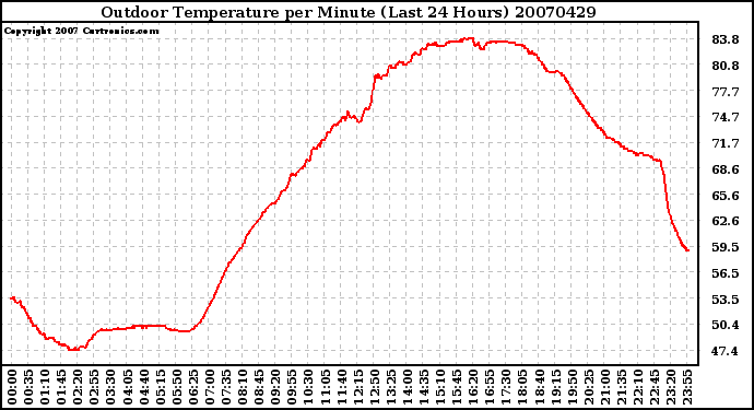 Milwaukee Weather -- 20070429 Outdoor Temperature per Minute (Last 24 Hours) -- From curtronics.com by Curt Blank