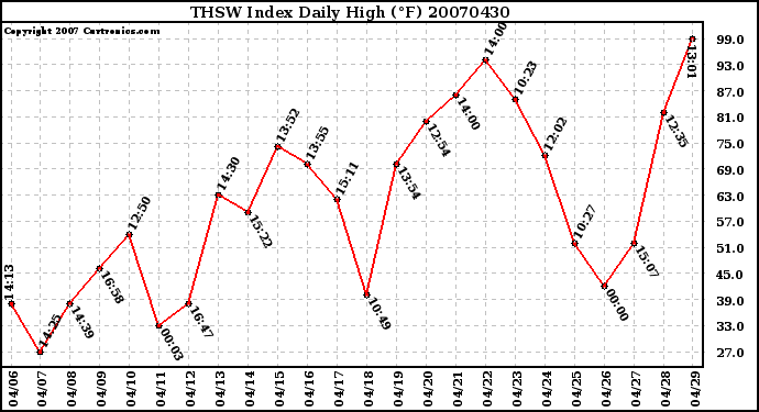 20070430 THSW Index Daily High (°F)