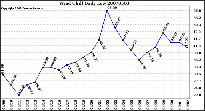 Milwaukee Weather -- 20070503 Wind Chill Daily Low -- From curtronics.com by Curt Blank