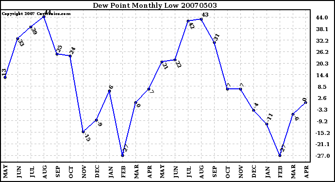 20070503 Dew Point Monthly Low